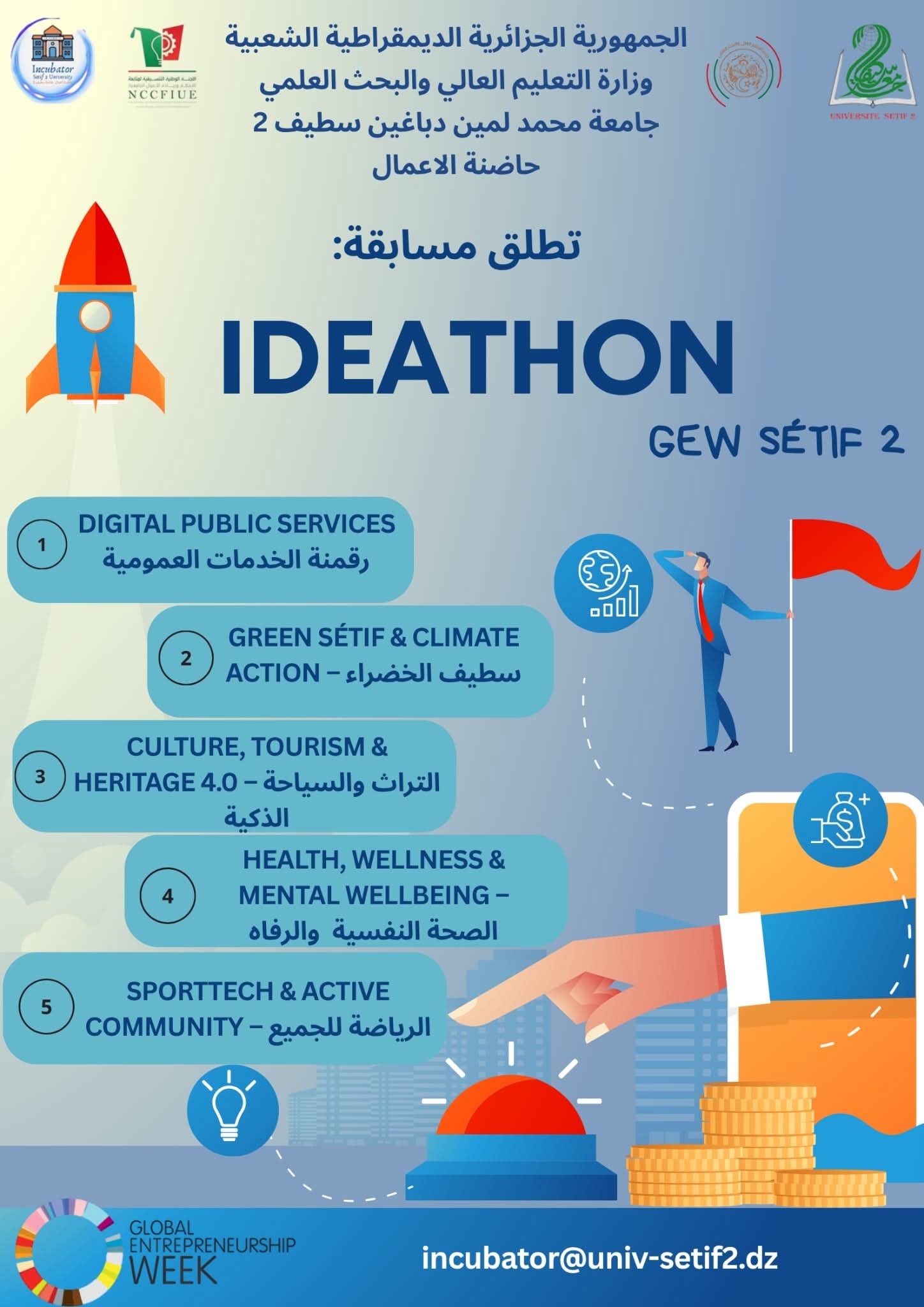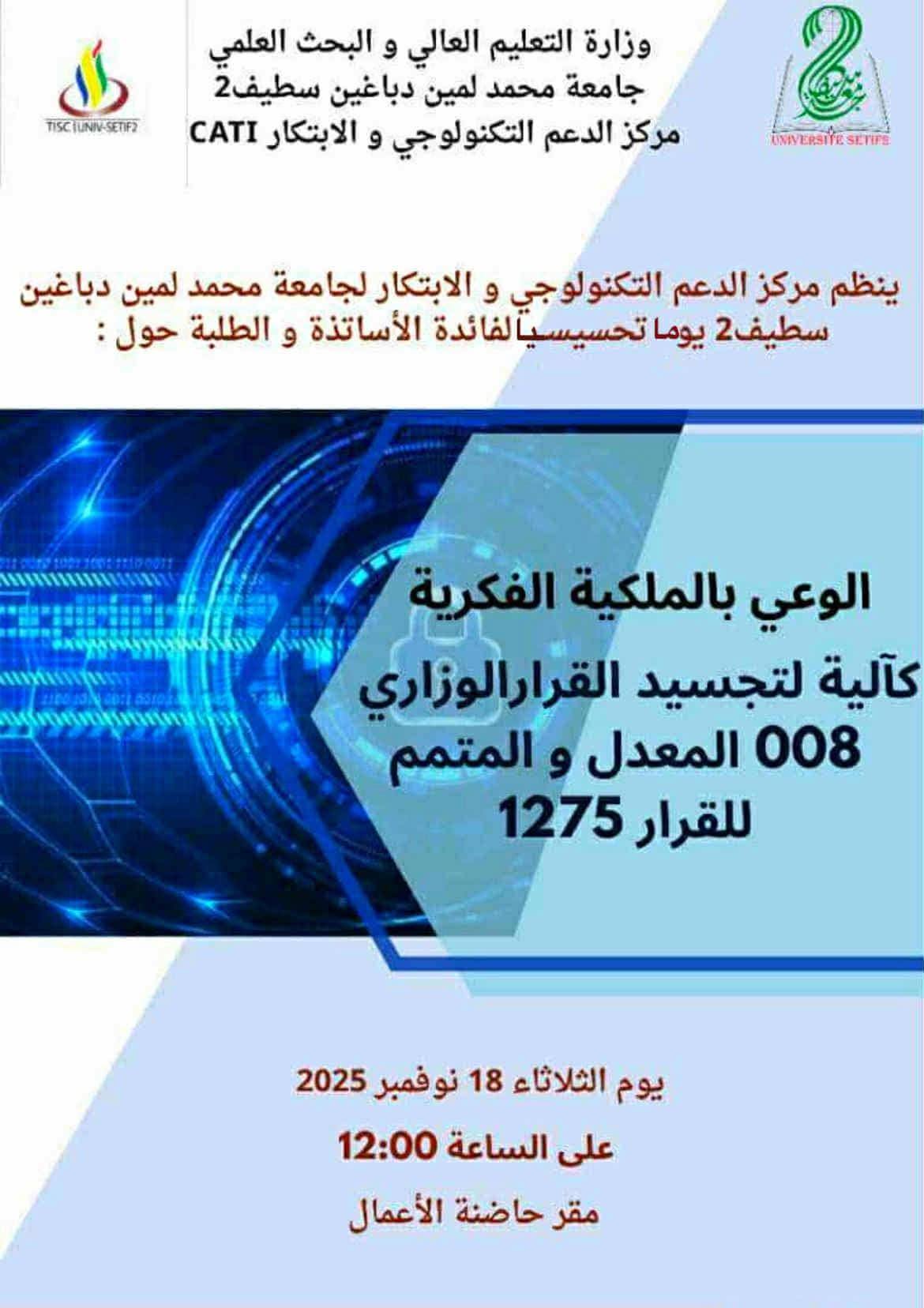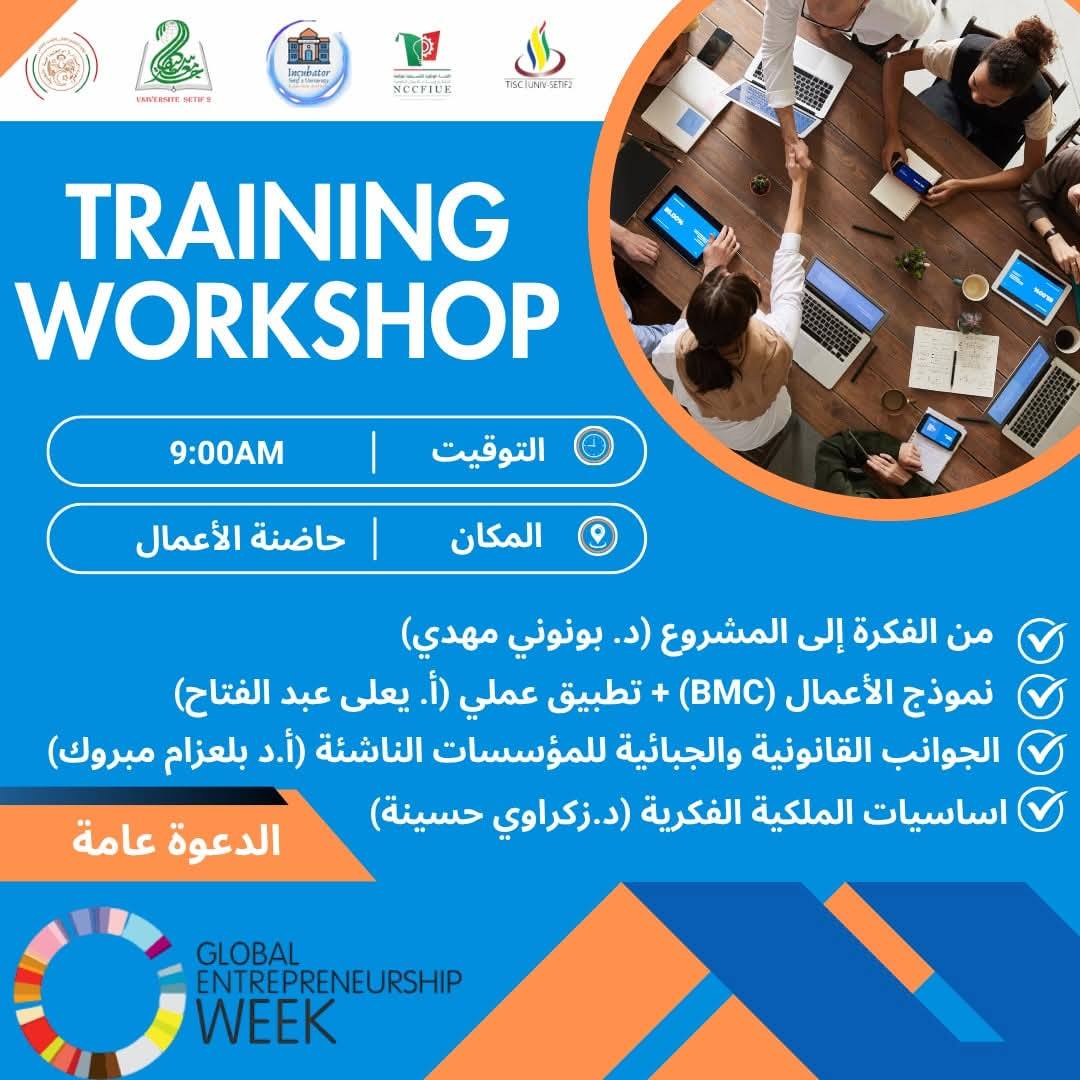 شارك في تأطير المداخلات وورشات التكوين السادة الأساتذة والخبراء المكونين في مجال الابتكار وريادة الأعمال من واجهات الجامعة وإطارات الوكالة الوطنية لترقية وتطوير المقاولاتية لولاية سطيف.